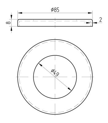 Abdeckrosette aus Edelstahl, flach, mit Lochung für runde Profile.