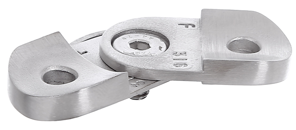 2-teilige Anschraubplatte aus Edelstahl, von 90-180° stufenlos einstellbar, mit 3 Bohrungen. Mit der flexibel einstellbaren Platte lassen sich z.B. Handlauf-Ecken in jedem beliebigen Winkel mit auf Gehrung geschnittenen Rohren mit nur einem Pfosten realisieren.
