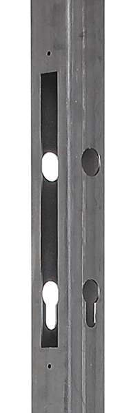 Anschweißprofil aus Quadratrohr Stahl roh, glatt, mit gelaserten Ausschnitten für Einsteckschlösser.