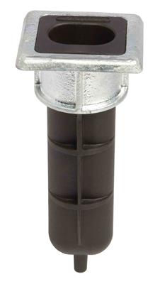 Bodenhülse EGS aus Polypropylen mit feuerverzinkter Bodenplatte für Bolzen-Stangenriegel.