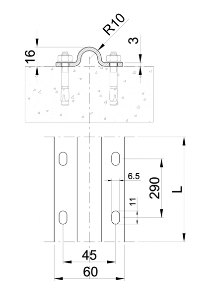 Bodenlaufschiene V2A, Länge 3000mm, 60x16mm, Schraubmontage