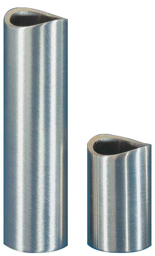 Distanzhülse aus Edelstahl, einseitig für runde Profile eingeschliffen; zweite Seite flach.