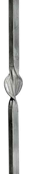Geländerstab aus Vierkantmaterial mit einem ausgeprägtem Drehornament in der Mitte.