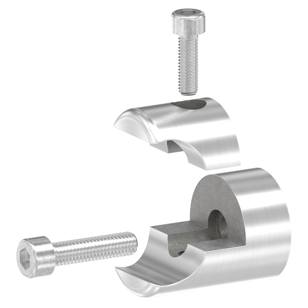 Halter aus Edelstahl für runde Blecheinfassprofile.