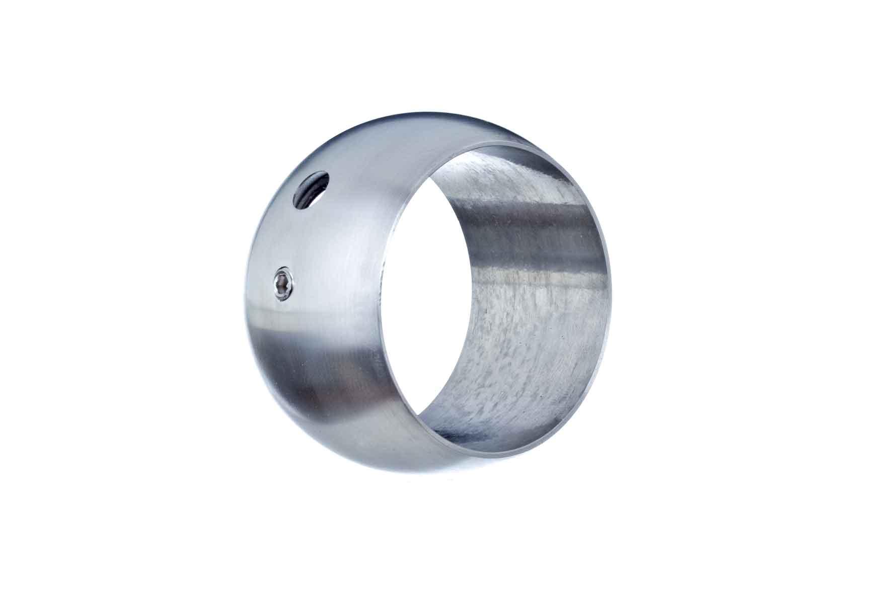 Kugelring aus Edelstahl. Zusammen mit einem Handlaufträger/Handlaufträgerstift zur Befestigung von Handläufen oder zur Verwendung als Abdecken von Rohrstößen geeignet.