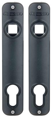 Langschildpaar 3020-HYB-STD aus Polyamid. Durch das universelle Lochbild sind die Langschilder auch mit dem Einschweißprofil HLT und dem Einschweißgehäuse HWLB kompatibel.