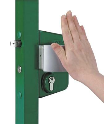 Push-Set 3006PUSH aus Aluminium. Dieser Drücker ersetzt den normalen Drücker und sorgt dafür, dass ein Tor mit einer Stoßbewegung geöffnet werden kann.