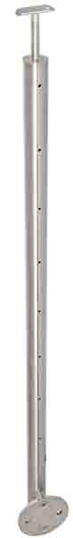Rundpfosten aus Edelstahl mit starrem Handlaufhalter, 8 Gewindebohrungen M6 und seitlicher Platte für seitliche Montage.