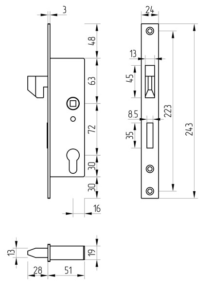 Schiebetor-Einsteckschloss von AMF, Dorn 35