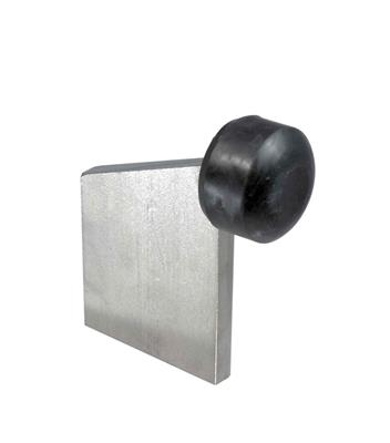 Torstopper aus Edelstahl. Angeschweißter Pufferkopf ist mit schwarzem Gummi überzogen.