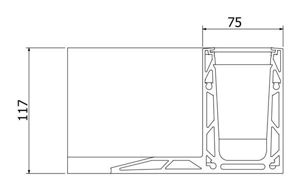 Außenecke 90° für das Ganzglasgeländersystem Trans Level 3620 für Seitenmontage, aus Aluminium, unbehandelt.
