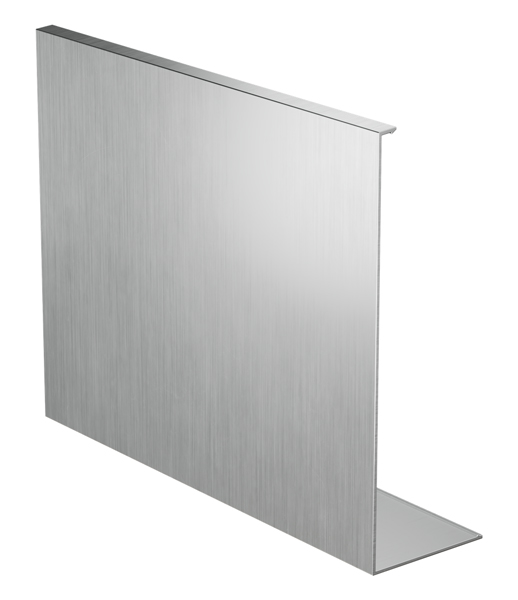 Abdeckprofil aus Aluminium - natur eloxiert - zum Aufklemmen auf Trans Level Glasprofile 3621. Das Profil bietet einen nahtlosen Anschluss und eine gemeinsame Abdeckung vom Glasprofil zu unterschiedlich breiten individuell angefertigten Verblendungen.