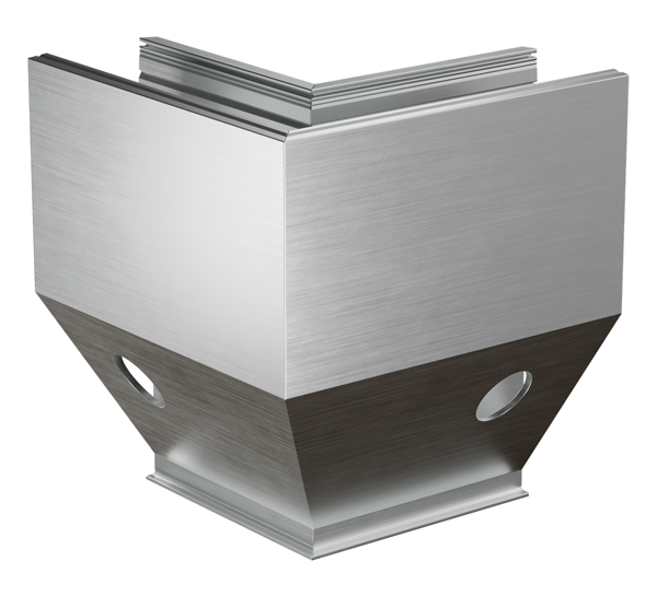 Außenecke 90° für das Ganzglasgeländersystem Trans Level 3621 für Seitenmontage, aus Aluminium, natur eloxiert.