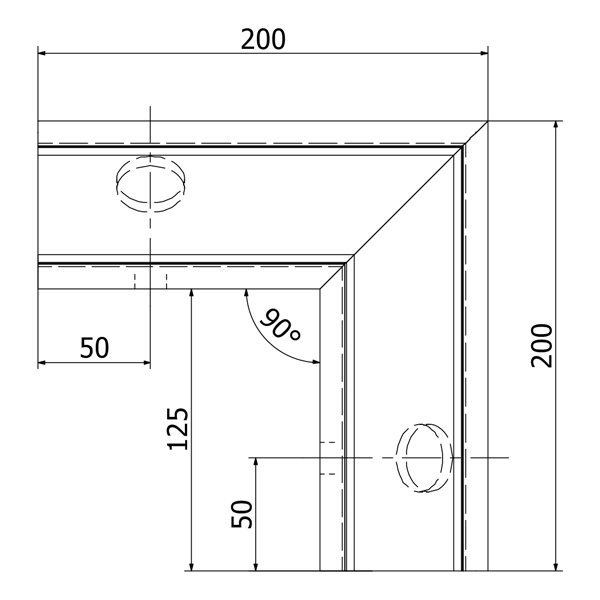 - Schenkelaußenmaß: je 200 mm