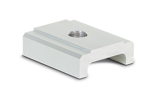 Distanzstück für Glasprofile Trans Level 6620 für Bodenmontage, Modell 6620, aus natur eloxiertem Aluminium. Sie werden unter den Glasprofilen montiert, um auf eingefassten Flächen für eine Entwässerung zu sorgen, sollte anderweitig keine Möglichkeit vorgesehen sein oder gewünscht werden.