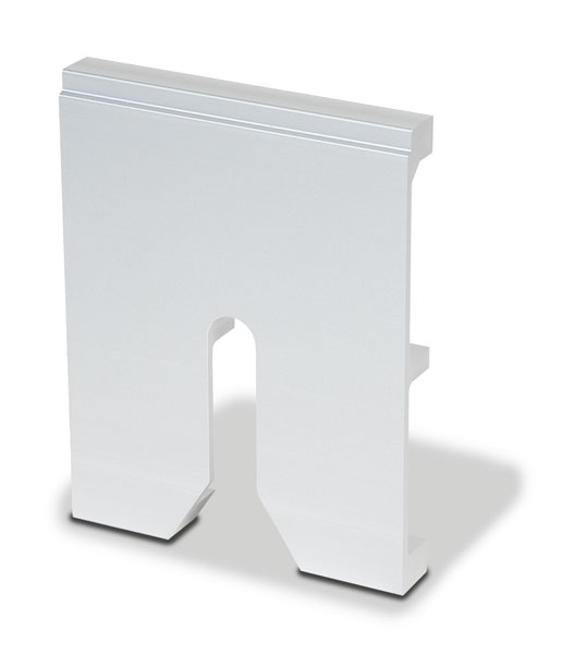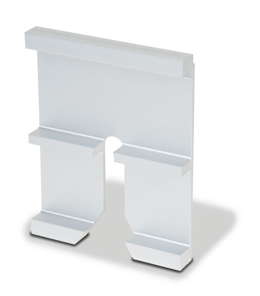 Distanzstück für Glasprofile Trans Level 6621 für Seitenmontage, Modell 6621, aus natur eloxiertem Aluminium. Sie werden unter den Glasprofilen montiert, um auf eingefassten Flächen für eine Entwässerung zu sorgen, sollte anderweitig keine Möglichkeit vorgesehen sein oder gewünscht werden.