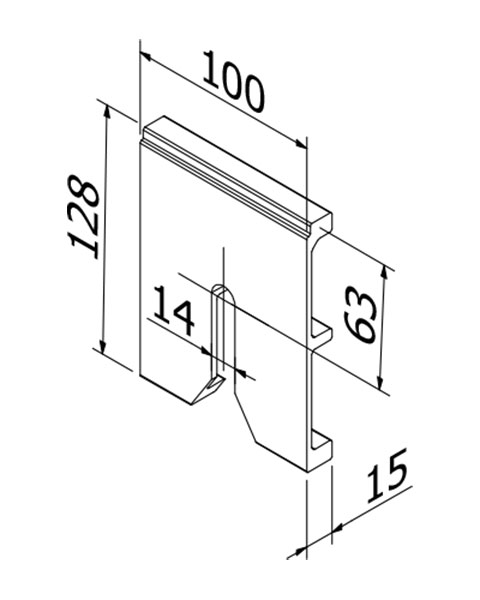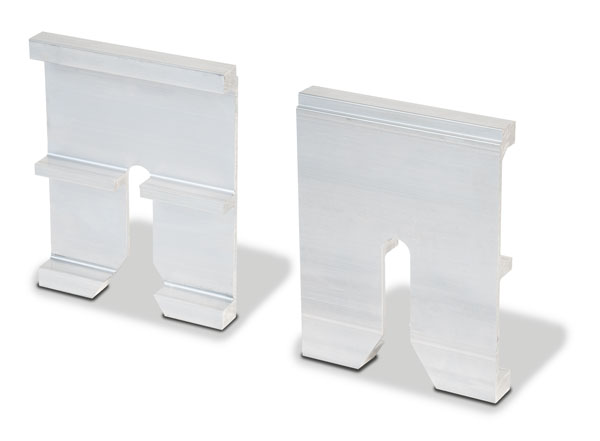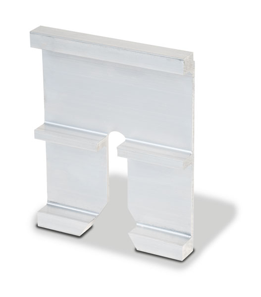 Distanzstück für Glasprofile Trans Level 6621 für Seitenmontage, Modell 6621, aus unbehandeltem Aluminium. Sie werden unter den Glasprofilen montiert, um auf eingefassten Flächen für eine Entwässerung zu sorgen, sollte anderweitig keine Möglichkeit vorgesehen sein oder gewünscht werden.