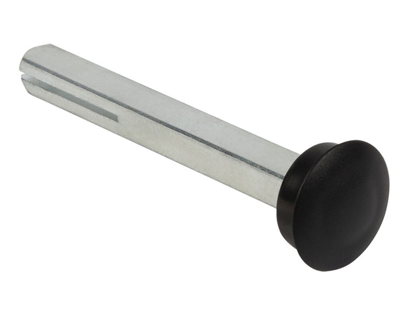 Einseitiger Drückerstift 3006.H-SPIN-90 aus verzinktem Stahl - passend für LOCINOX-Einsteckschlössern in 40- oder 50-mm-Torprofilen. Der Wechselstift kann mit jedem LOCINOX-Griff  bzw. -Drücker kombiniert werden. Die verkürzte Seite ist mit einem schwarzen Blindstopfen versehen.