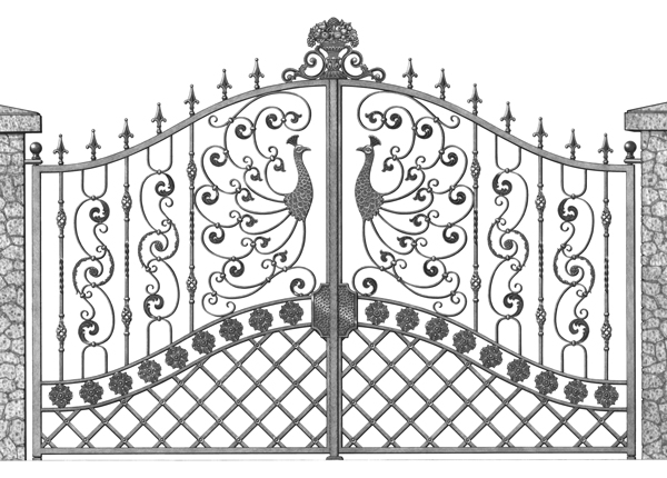 Zierelement "Pfau", Schmiedeguss + Flachmaterial, 545x945mm